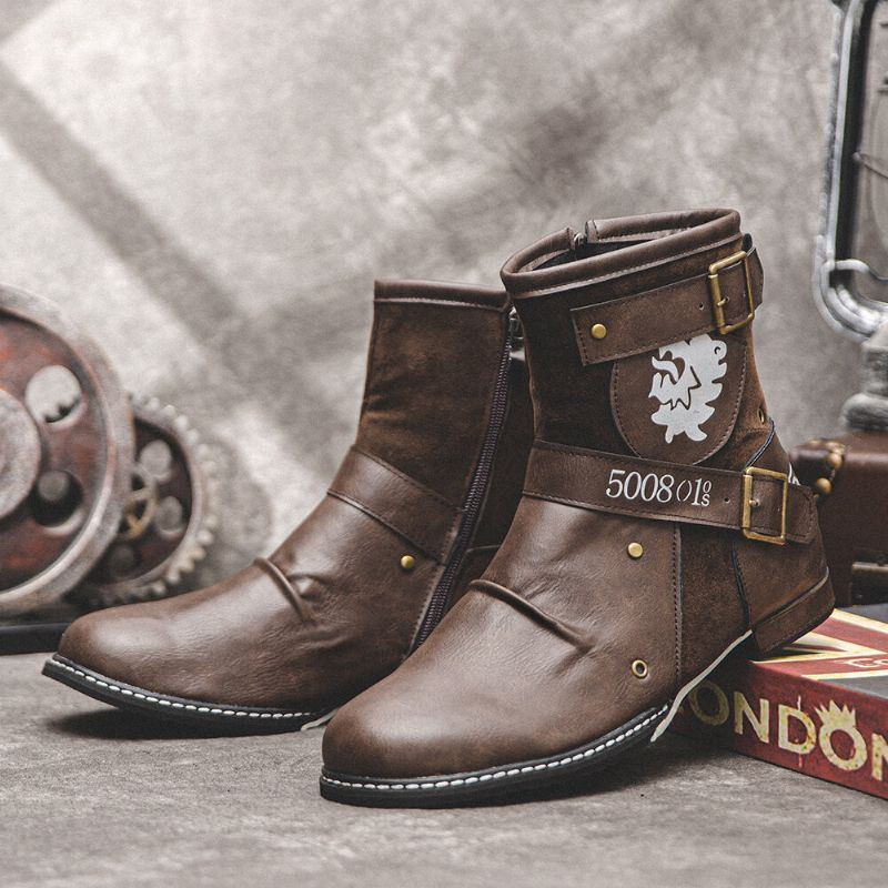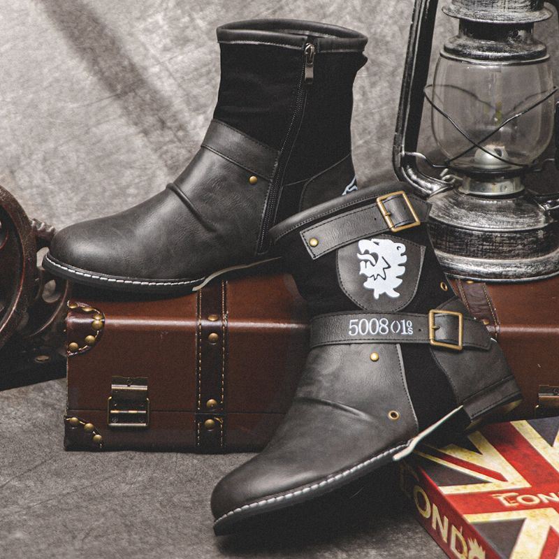 Miesten Nahkaa Hengittävä Pehmeä Pohja Pyöreä Kärki Liukumaton Vetoketju Casual Martin Boots