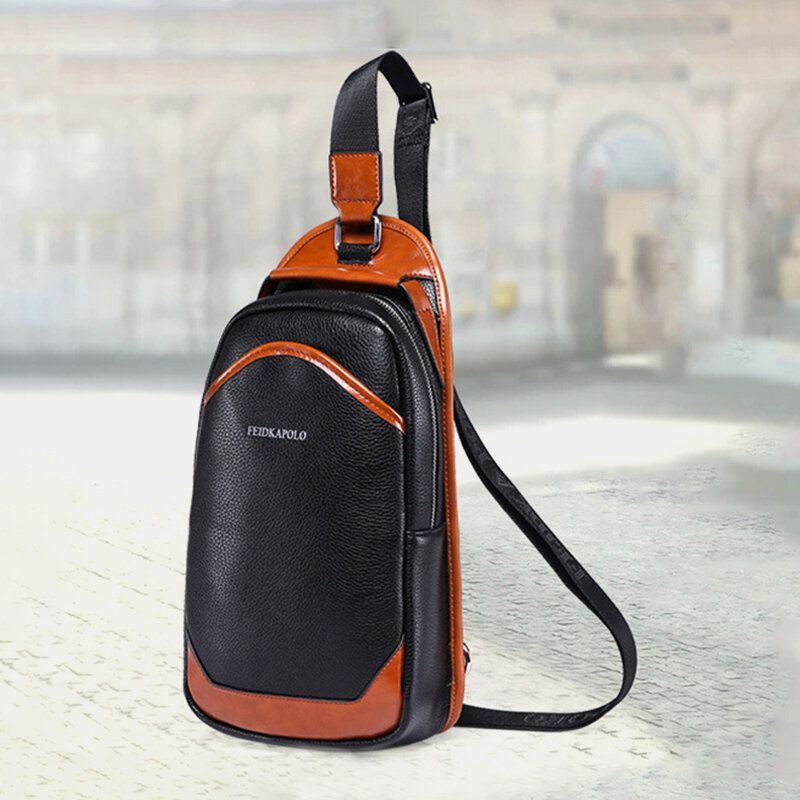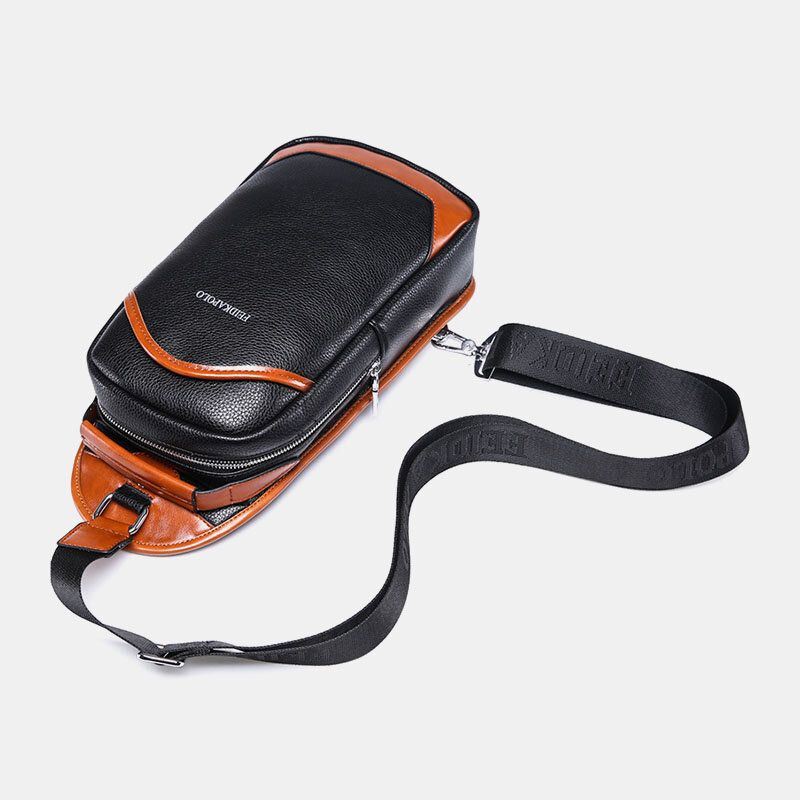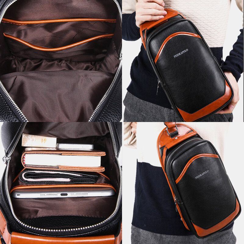 Miesten Nahkainen Tilkkutäkki Rento Suuri Tilavuus Varkaudenesto Rintalaukku Crossbody Laukku Olkapää