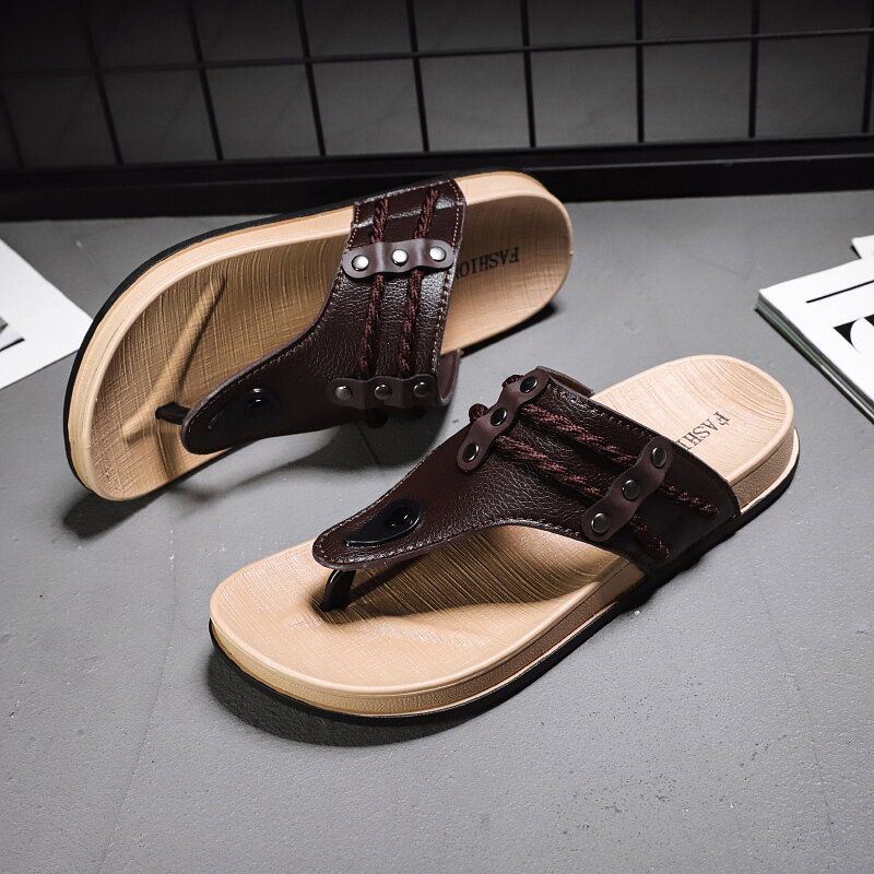 Miesten Nahkaiset Hengittävät Mukavat Liukumattomat Varvastossut Rento Rantatossut