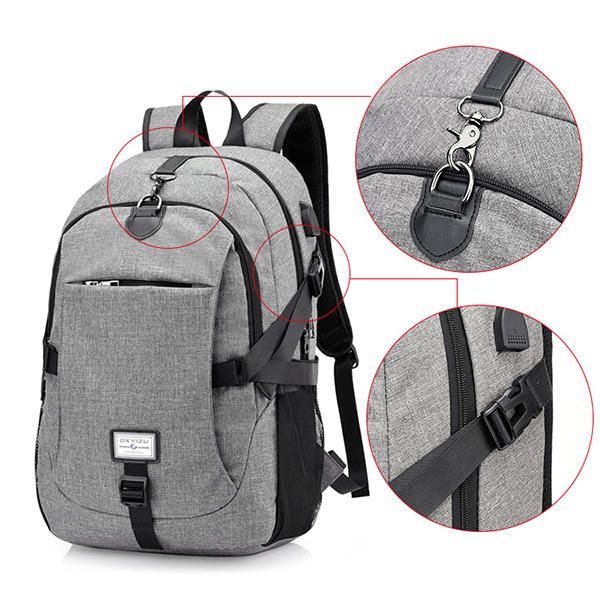 Miesten Nailoninen Suurikapasiteettinen Kannettavan Tietokoneen Reppu Matkalaukku Usb-latausportilla