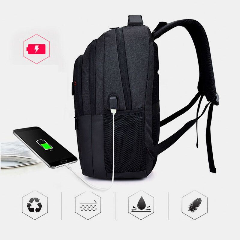 Miesten Nailoninen Usb-lataus Vedenpitävä Suuri Kapasiteetti 15.6 Tuuman Kannettavan Tietokoneen Laukku Matkareppu