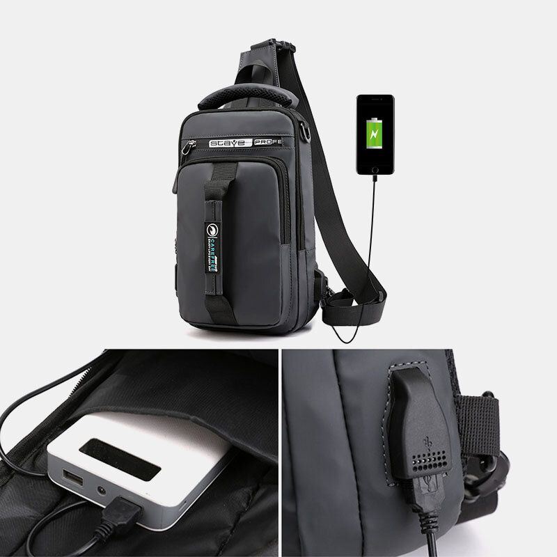 Miesten Nylon Usb-lataus Casual Outdoor Lyhyt Rintalaukku Olkalaukku Reppu