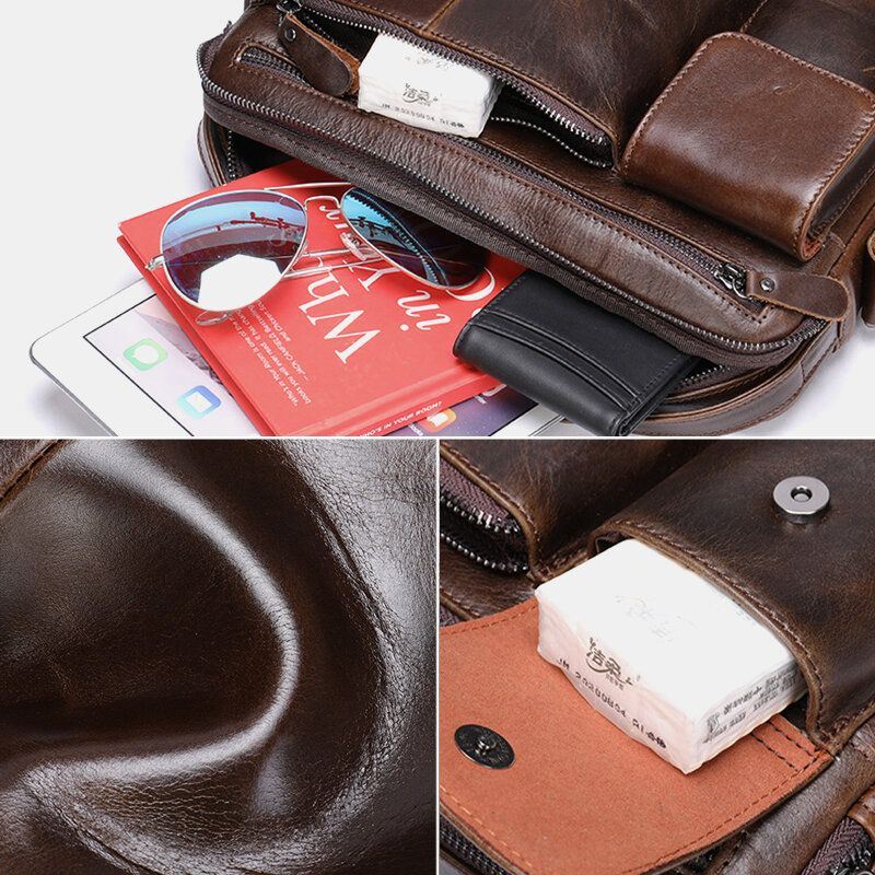 Miesten Öljyvaha Nahka Suuri Tilavuus Vedenpitävä Messenger Bag Salkku Monitaskuinen Lehmännahkainen Crossbody Laukut Olkalaukku
