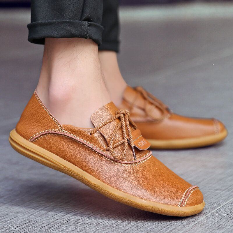 Miesten Ompelevat Puhdasväriset Lehmännahkaiset Liukumattomat Nauhalliset Vapaa-ajan Kengät