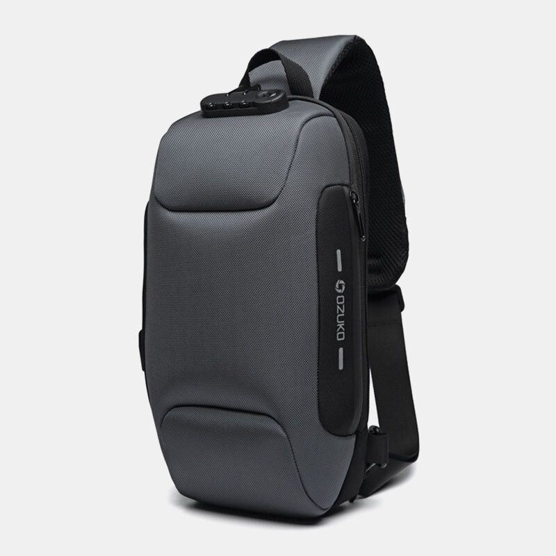 Miesten Oxford Salasanalukko Varkaudenesto Vedenpitävä Heijastava Design Crossbody Laukku Moniosastoinen Usb-latauspussi