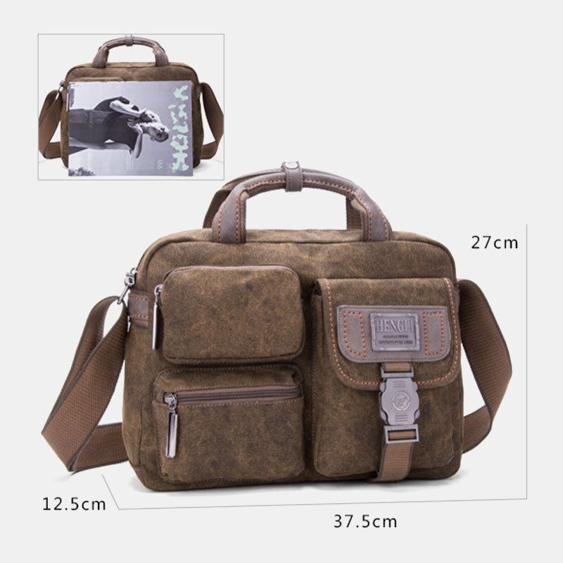 Miesten Paksu Kangas Monitaskuinen Suuri Kapasiteetti Crossbody Olkalaukku Takana Varkaudenesto Tasku Käsilaukku