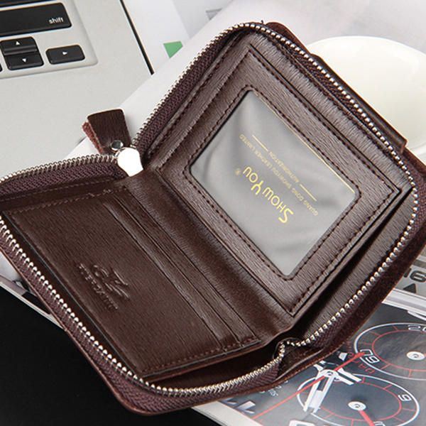Miesten Pu-nahka Minimalistinen Vetoketjullinen Lompakko Monitoiminen Monikorttikotelo