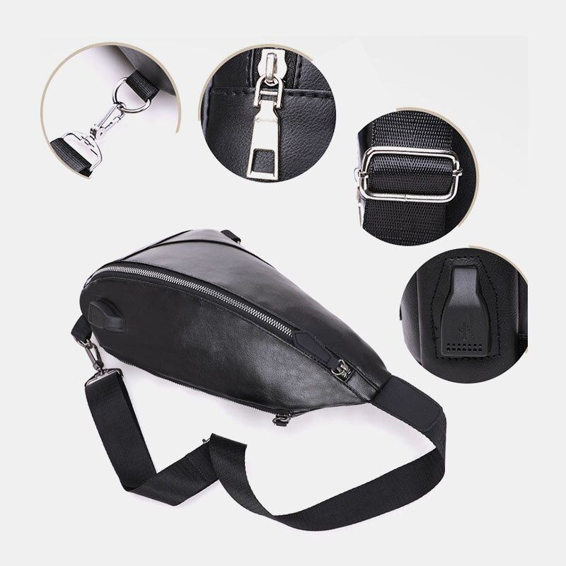 Miesten Pu Nahka Usb Lataus Vedenpitävä Rento Crossbody Laukku Rintalaukku Sling Bag