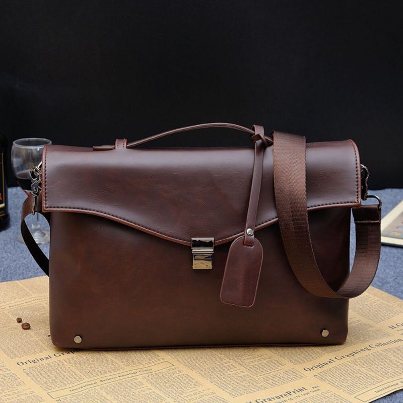 Miesten Pu-nahka Vedenpitävä Kulutusta Kestävä Suuri Kapasiteetti Käsilaukku 14 Tuuman Kannettavan Tietokoneen Laukku Opettajan Laukku Matkalaukku