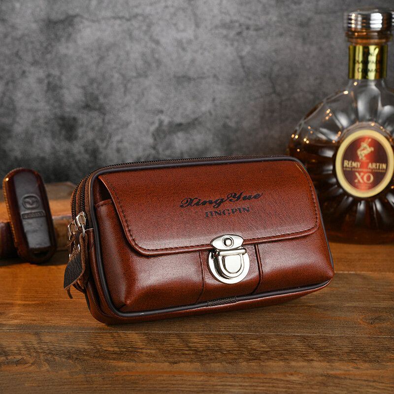 Miesten Pu-nahkainen Monitoiminen Rento 6.3 Tuuman Puhelinlaukku Vyötärölaukku