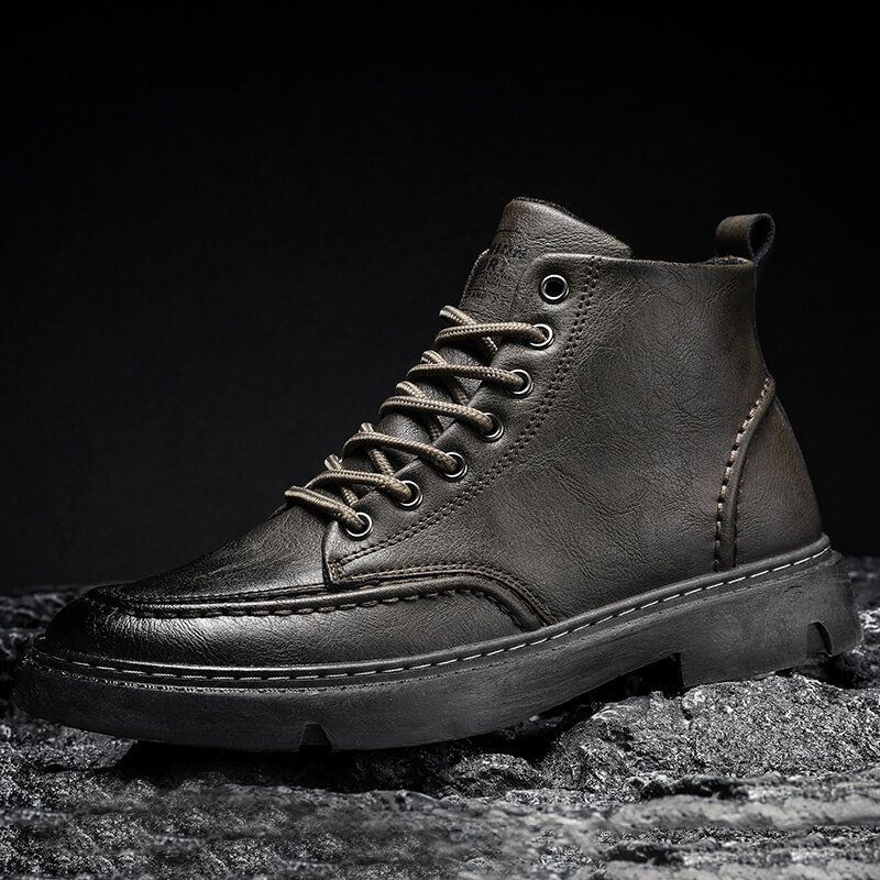 Miesten Pure Color Liukumattomat Korkeavartiset Nauhalliset Vapaa-ajan Työkalusaappaat