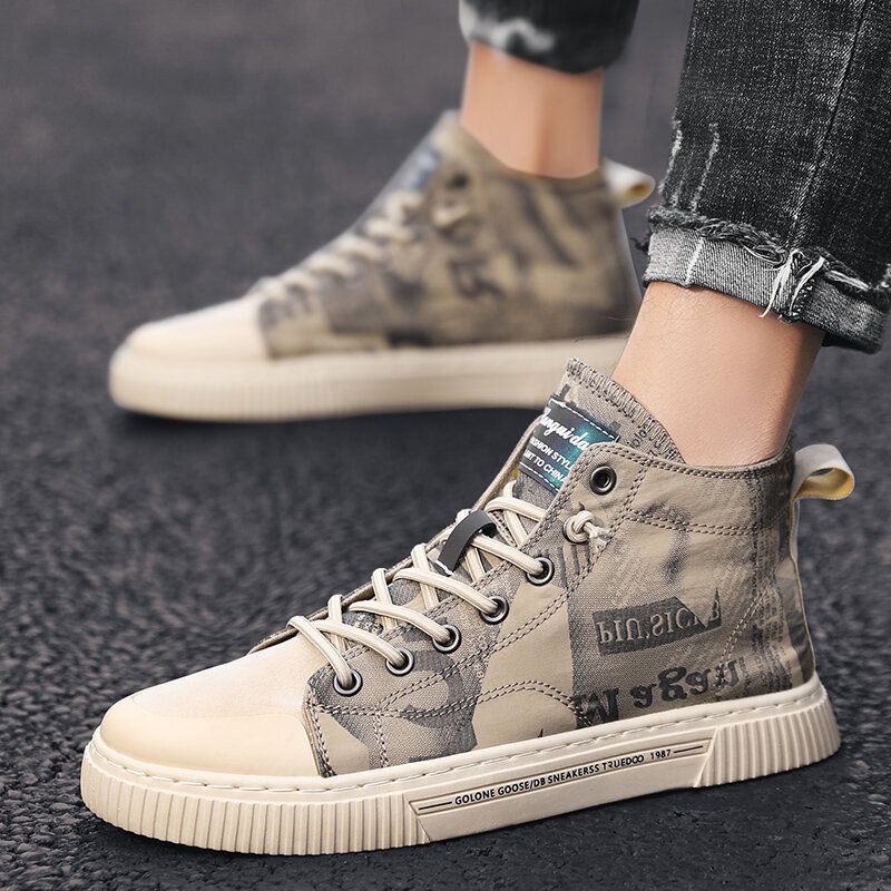 Miesten Pyöreät Kirjaimet Painettu Nauhalenkkarit Vapaa-ajan Lautasaappaat
