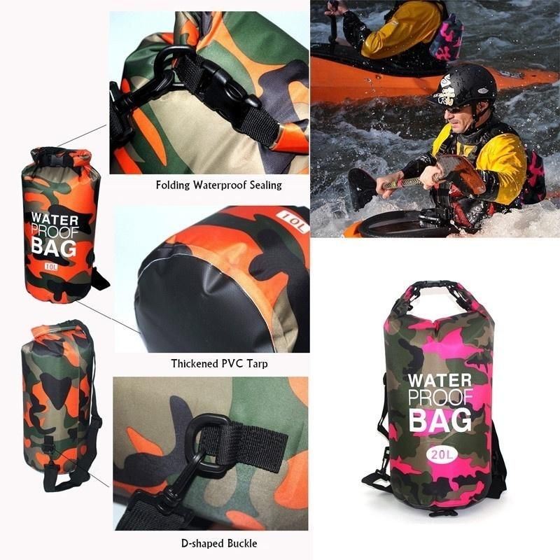 Miesten Vedenpitävä Kevyt Ulkolaukku Naamiointikuivalaukku Camo-kompressiosäkki