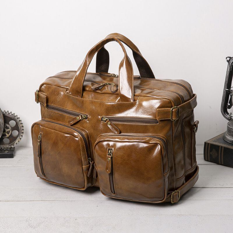 Miesten Vintage Business Monitaskuinen Reppu Suuri Tilavuus Vedenpitävä Monikantainen Salkku Crossbody Laukku