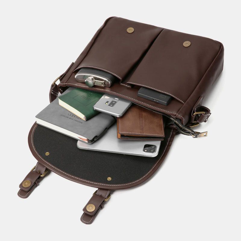 Miesten Vintage Suuri Tilavuus Monitaskuinen Pu-nahkainen Opettajalaukku Crossbody Laukku Lyhyt Olkalaukku