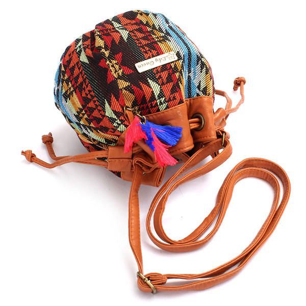 Naiset Bohemia Canvas Bucket Laukut Kiristysnyöri Crossbody Laukut Olkalaukut