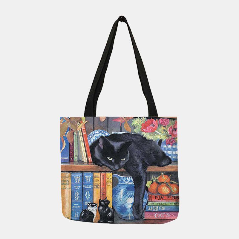 Naiset Huopa Söpö Kissa Kirjahylly Kirjalliset Teokset Kuvio Olkalaukku Käsilaukku Tote