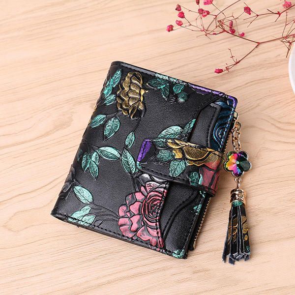 Naisten 11 Korttipaikan Kohokuvioitu Kukkainen Kolikkolompakko