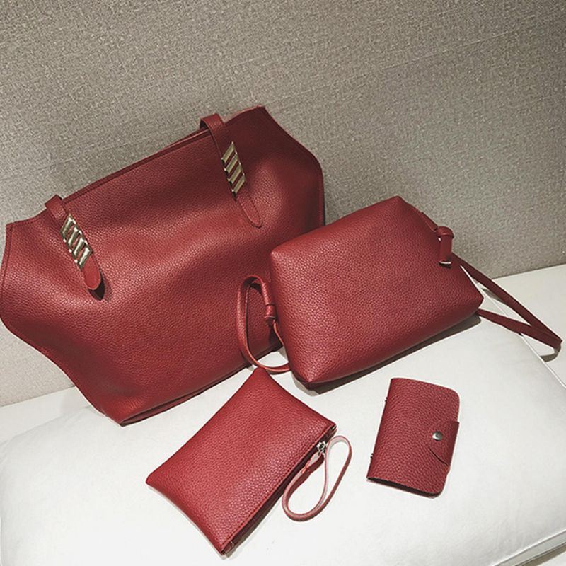 Naisten 4kpl Tekonahkainen Solid Vapaa-ajan Käsilaukku Olkalaukku