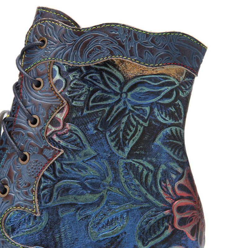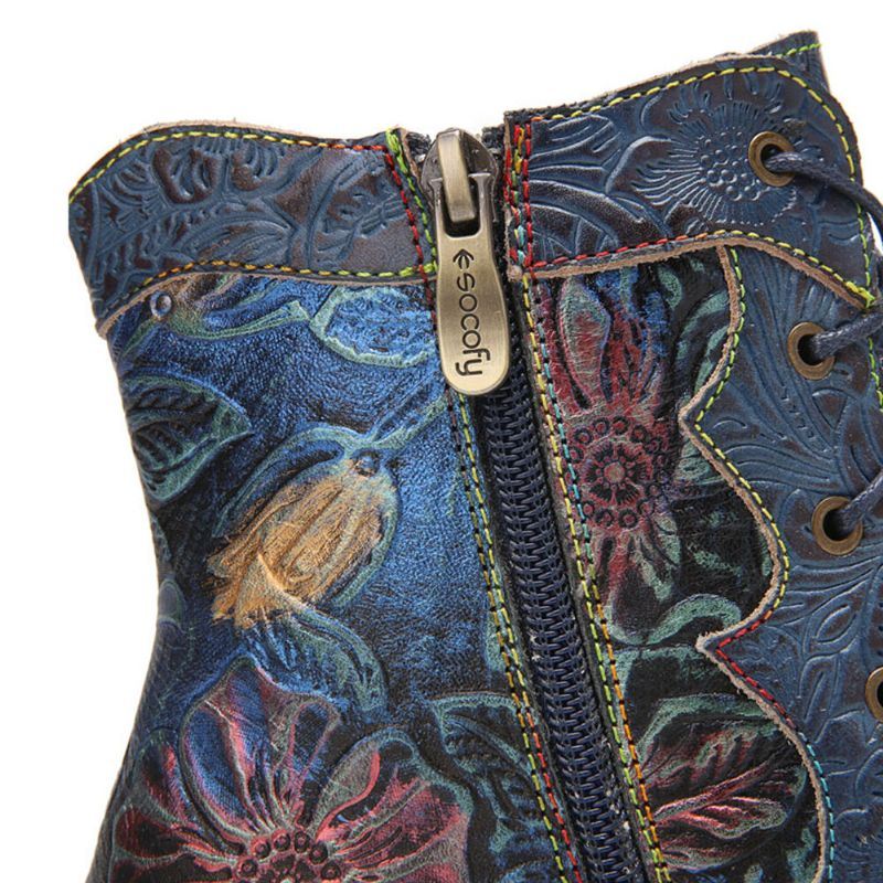 Naisten Aidosta Nahasta Valmistettu Retro Kukkainen Sivuvetoketju Mukavat Korkokengät