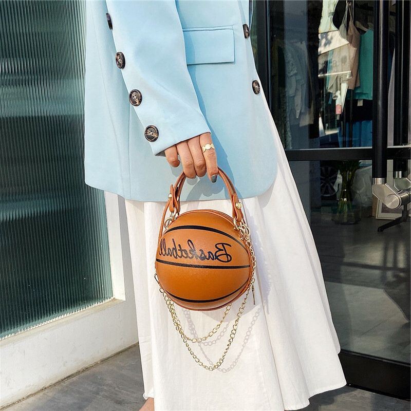 Naisten Ainutlaatuinen Muotoilu Koripallo Jalkapallo Look Mini Pyöreä Laukku Hangbag Muoti Säädettävä Olkalaukku Cross Body Bag