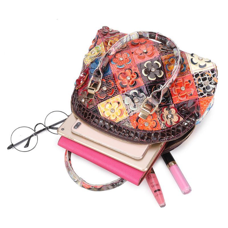 Naisten Aito Nahkainen Boheemi Kukkakäsilaukku