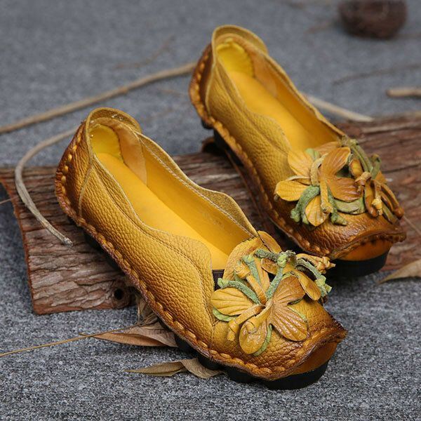 Naisten Aitoa Nahkaa Käsintehdyt Koristekukat Vintage Slip On Flats Loafers