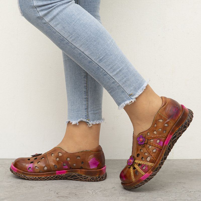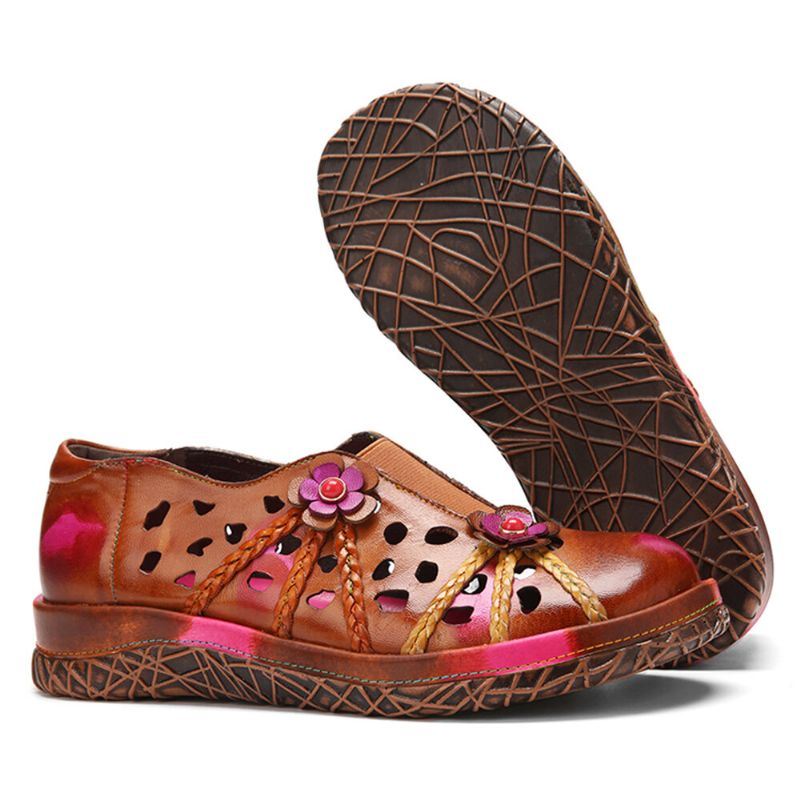 Naisten Aitoa Nahkaa Käsintehdyt Kudotut Mukavat Hengittävät Ontot Etniset Kukkakoristetut Tasaiset Kengät