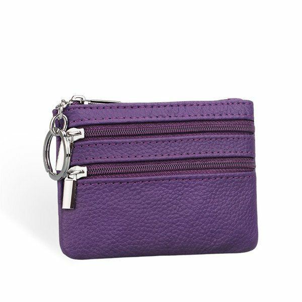 Naisten Aitoa Nahkaa Kaksoisvetoketjuinen Korttipidike Kytkinlompakko Candy Väri Kolikkolaukut