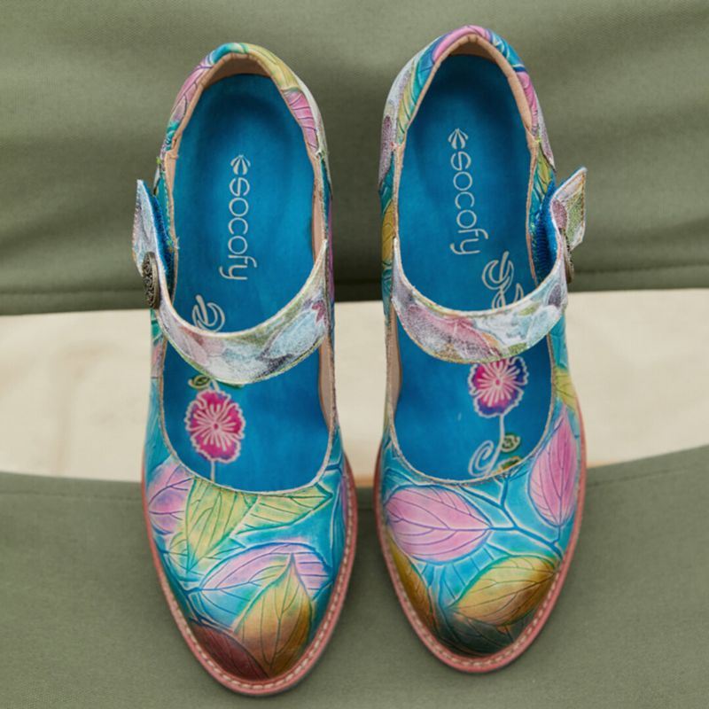 Naisten Aitoa Nahkaa Koukku- Ja Silmukkalehdillä Maalatut Mukavat Mary Jane -korkokengät