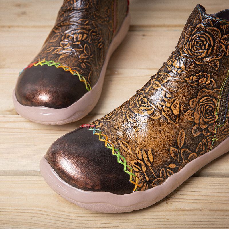 Naisten Aitoa Nahkaa Kukkakuvioiset Värikkäät Tikkaukset Nilkkurit