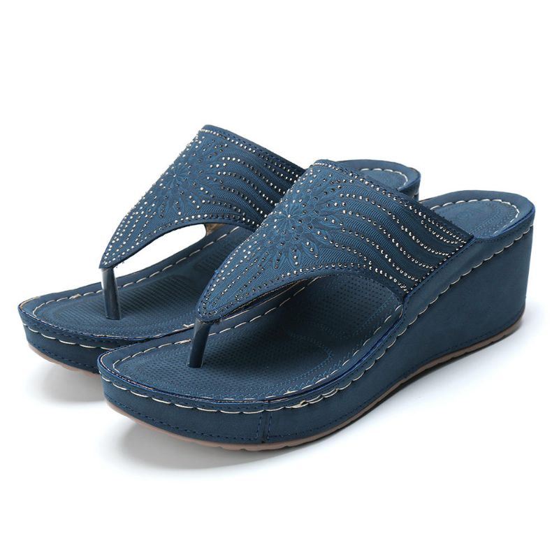Naisten Boheemi Tekojalokivi Kevyt Clip Toe Summer Beach Wedge Platform Sandaalit