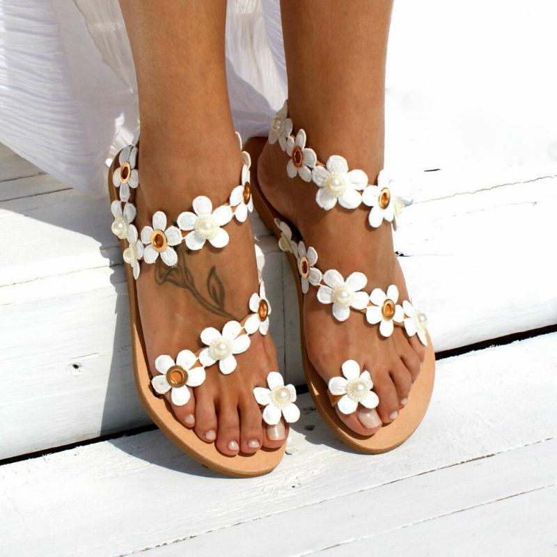 Naisten Bohemia Flower Decro Helmikoru Sormus Kesä Rantasandaalit