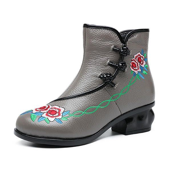 Naisten Brodeeratut Folkways Keskikorkoiset Nahkaiset Sammakkonapit Nilkkurit