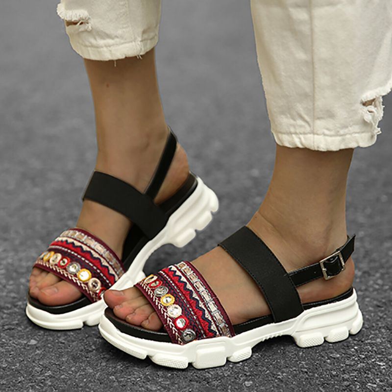 Naisten Brodeeratut Luistamaton Solkihihna Rento Alusta Sandaalit