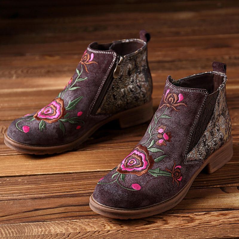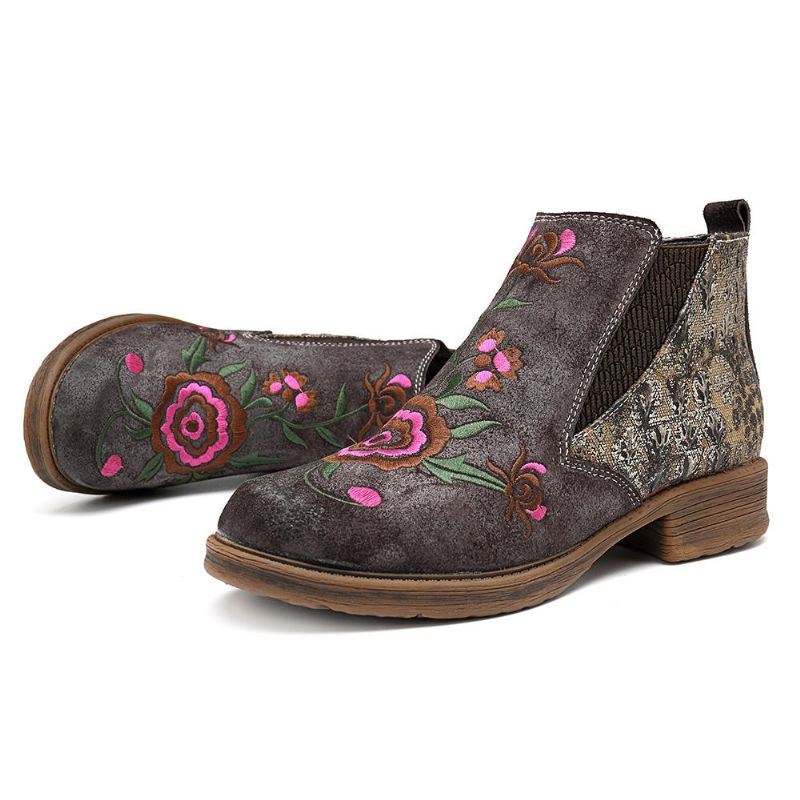 Naisten Brodeeroidut Kukkaliitokset Nahkanilkkurit