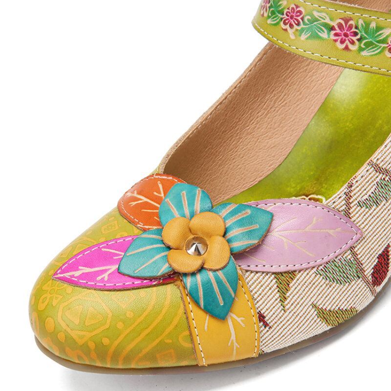 Naisten Elegantit Kukat Koristeet Lehdet Kangasompeleet Painettu Lehmännahka Mukavat Mary Jane -pumput