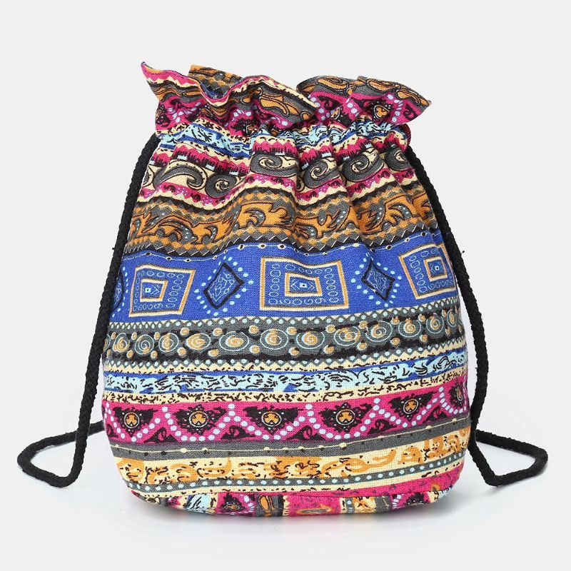 Naisten Etninen Canvas String Bucket Bag Crossbody Bag