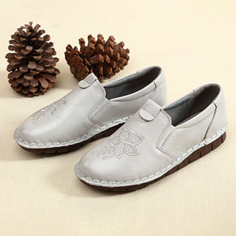 Naisten Folkways Brodeerattu Kukkainen Lehmännahkainen Pehmeä Pohja Litteät Nahka Kenkiin
