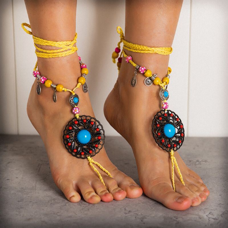 Naisten Helmillä Koristellut Ketjusateenkaarinauhakangas Bohemia Vapaa-ajan Tasaiset Kengät