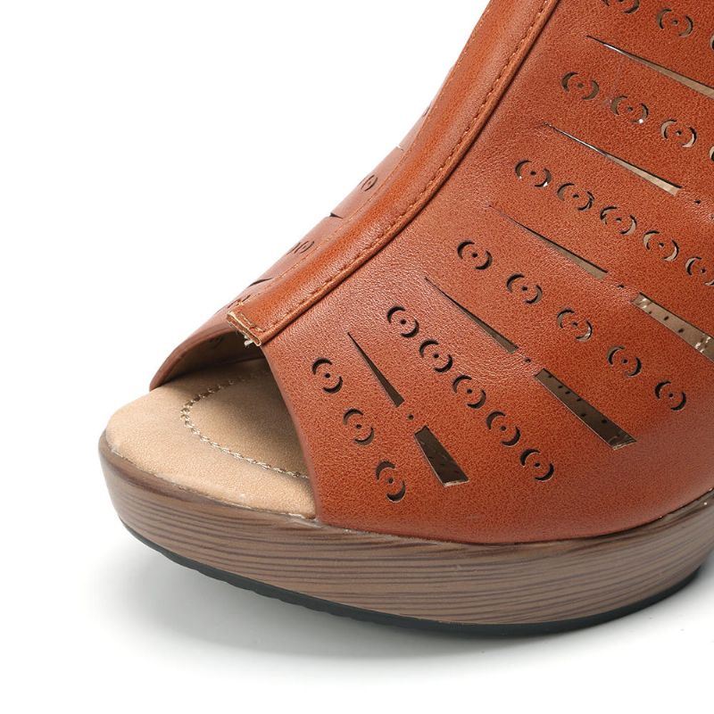 Naisten Hollow Out Peep Toe Slingback Solki Paksu Kantapää Korkeakorkoiset Pumput