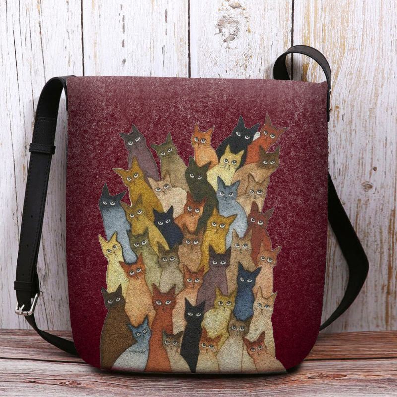 Naisten Huopa Söpö Sarjakuva Kissanprintti Casual Olkalaukku Crossbody Laukku