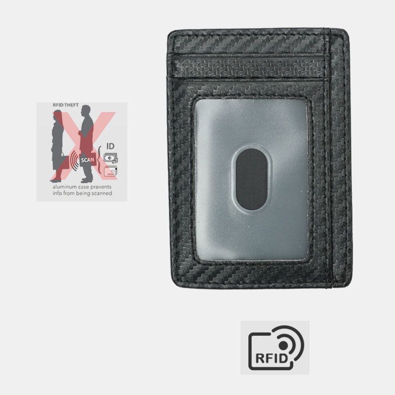 Naisten Ja Miesten Aitoa Nahkaa Sisältävä Korttikotelo Hiilikuitukuvioinen Monikorttipaikkalompakko