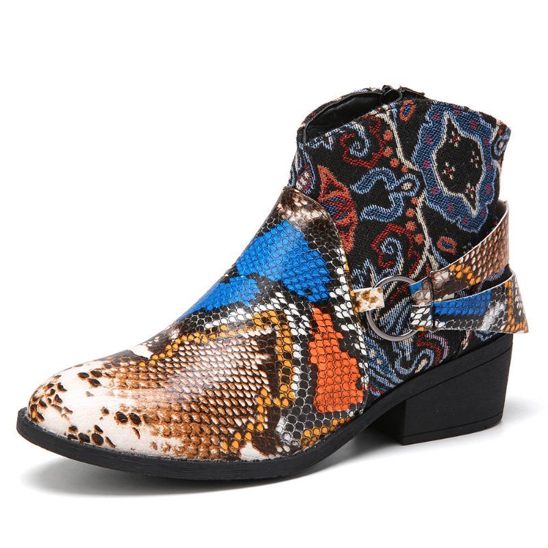 Naisten Käärmeennahkaiset Retro-kukkakankaiset Sivuvetoketjulohkot Heel-nilkkurit