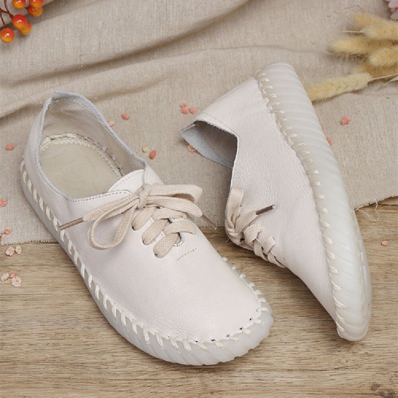 Naisten Käsinompeleet Yksiväriset Lehmännahkaiset Mukavat Pyöreät Varpaat Pehmeät Rento Asunnot