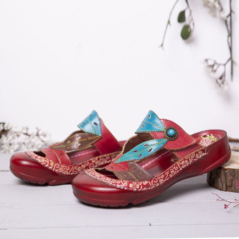 Naisten Käsintehdyt Nahkahelmillä Kukkaleikkaus Säädettävä Hihna Slip-on Muulit Puukengät Sandaalit