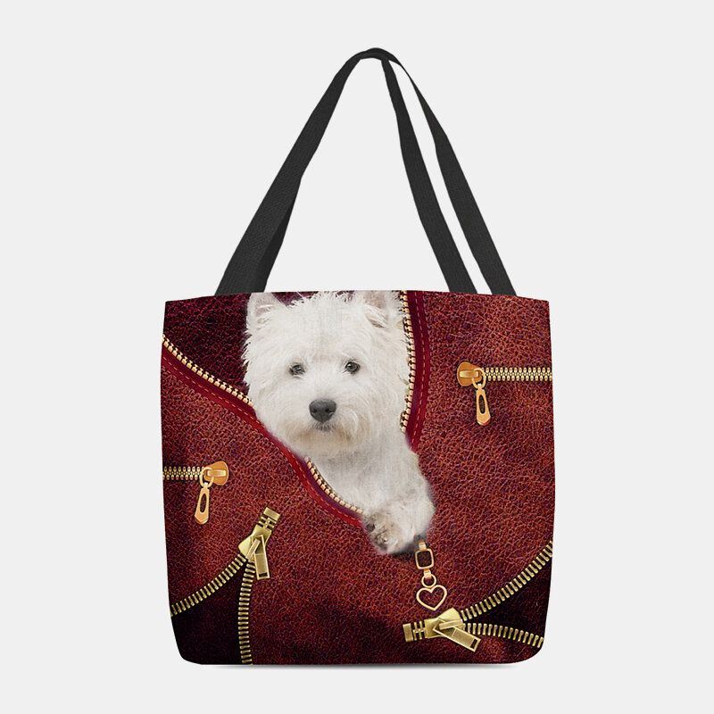 Naisten Kangas Söpö 3d Kolmiulotteinen Sarjakuva Koirakuvio Rento Olkalaukku Käsilaukku Laukku