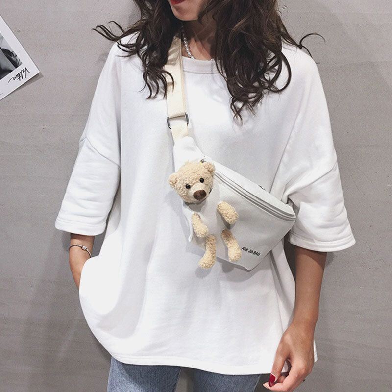 Naisten Karhunukke Kiinteä Kuuloke Söpö Crossbody Laukku Rintalaukku Sling Bag