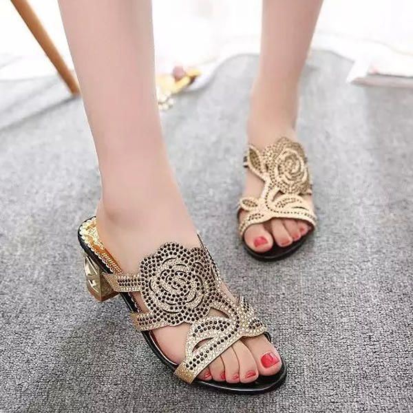 Naisten Kesäiset Hengittävät Rantasandaalit Tekojalokivi Tyylikkäät Kengät Slip On Platform Sandaalit
