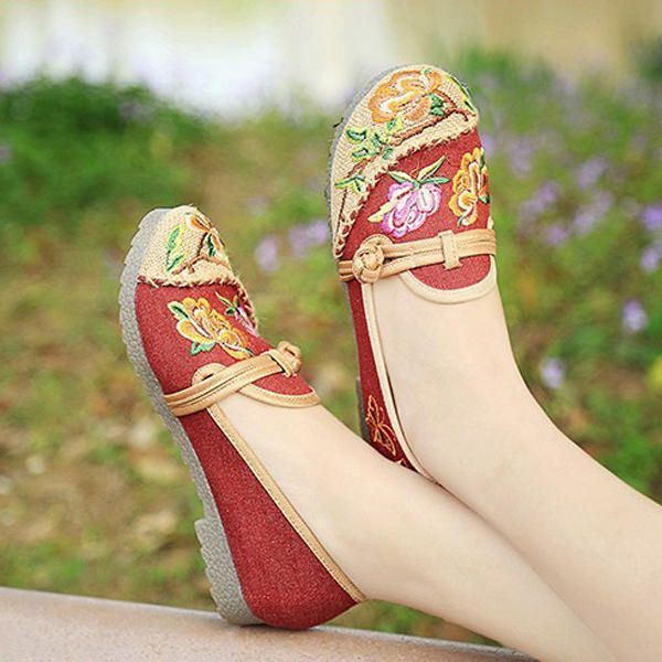 Naisten Kiinalaiset Kukkakirjailoidut Retrohousut Litteät Pyöreät Varvaskengät